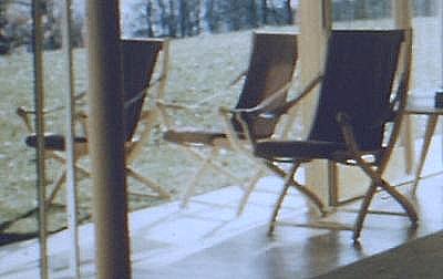 | Sep Ruf 1938: Kufenstühle, runder Tisch, Liegen aus Eschenholz, Stühle und Betten mit Sisal- oder Ledergurten. |